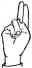 На ћирилици написано МИЛА СОЈЕВИЋ састоји се из 11 слова [?]. Исписано ћириличном једноручном азбуком за глувонеме: